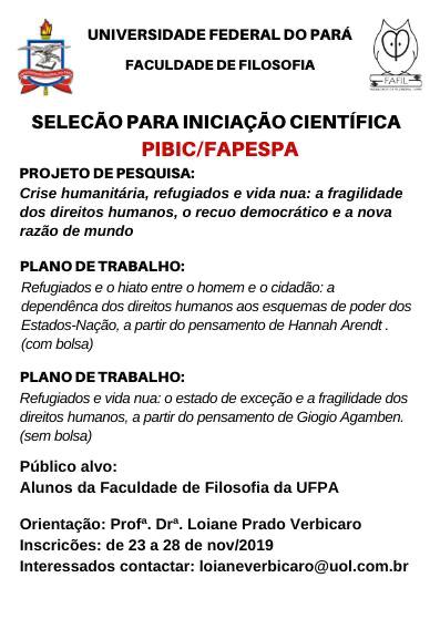 Bolsa PIBIC para alunos da Faculdade de Filosofia